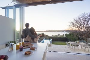 Couple having breakfast together at home.