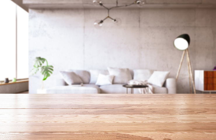 Table Top with Blur of modern Living Room interior